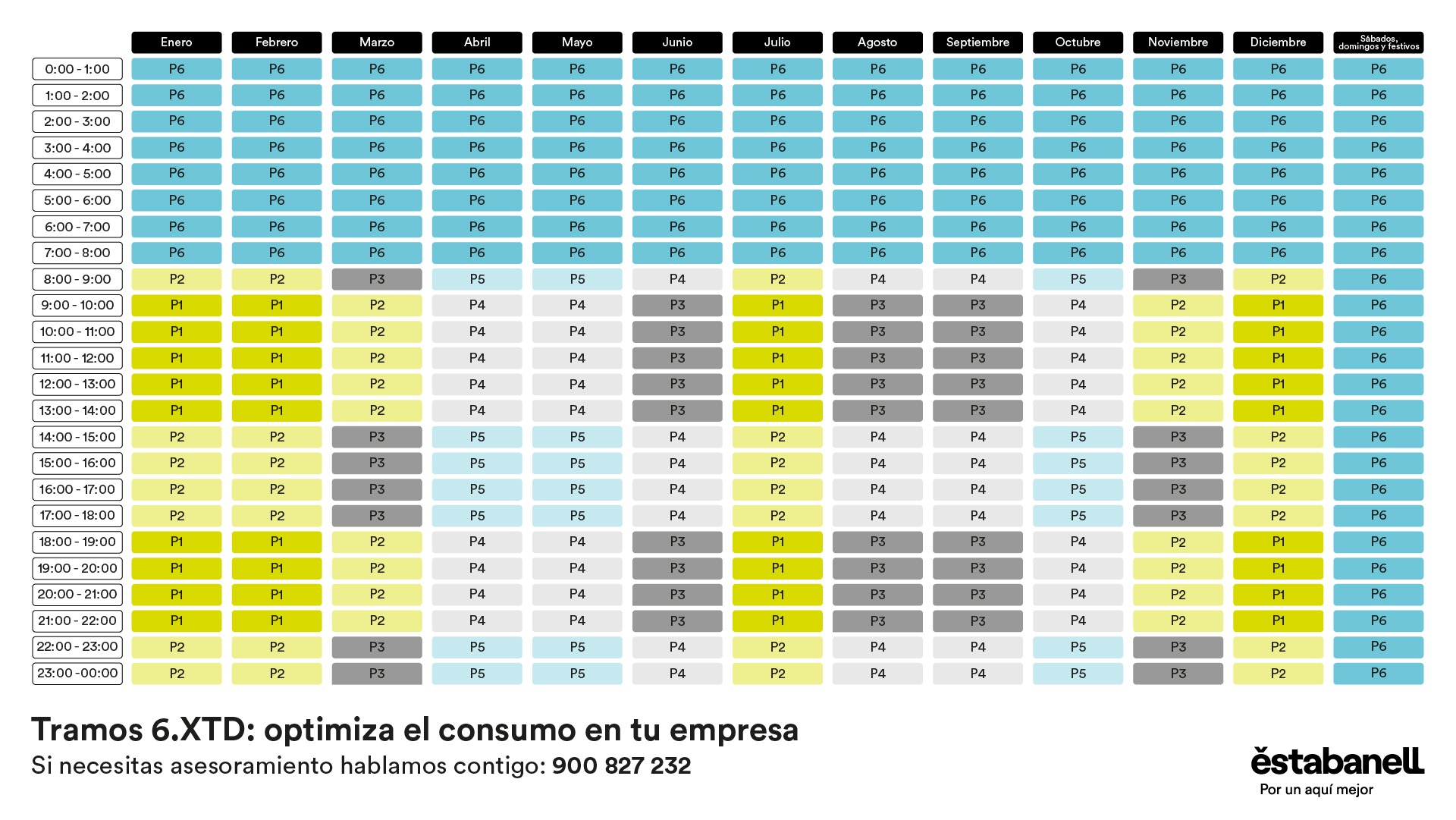 Si tu empresa tiene una potencia contratada de más de 15kW (tarifa 3.0 TD o 6.1 TD), puedes consultar aquí el detalle de los períodos de facturación por meses y horas.